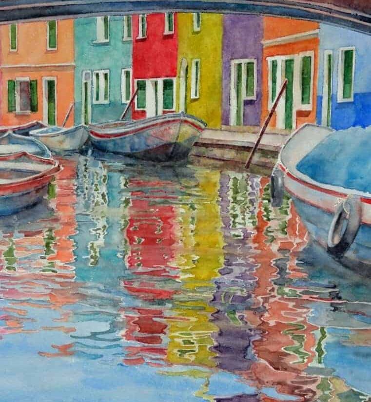 After Theresa Goesling and I asked Daniel Smith to produce their own brand of "Neutral Tint" they sent us each  a sample to work with. "Burano Watercolors" was painted using Neutral tint to turn down the brightness of the colors in the water.