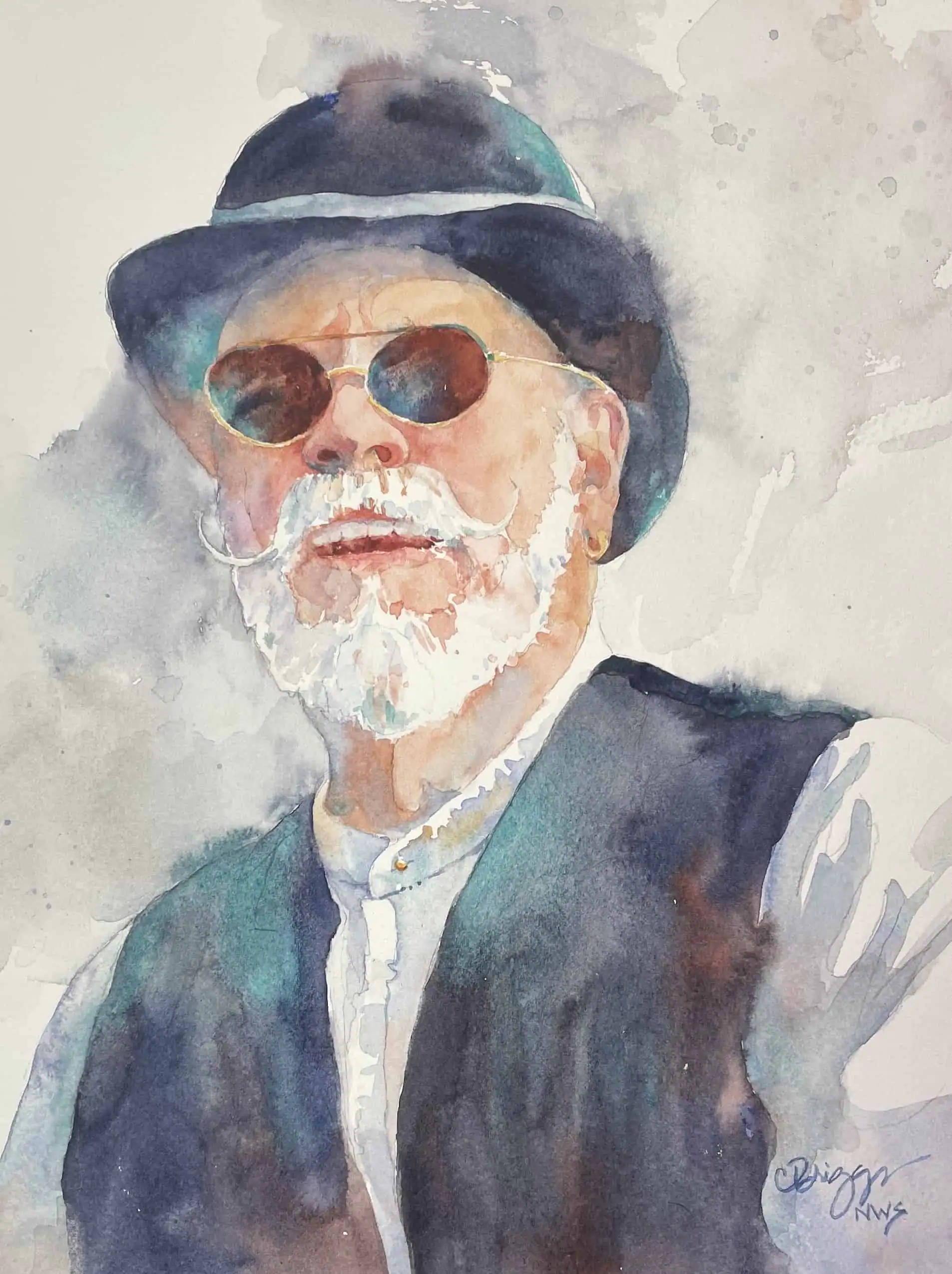 Embark on an unforgettable journey with the ‘Ghost Tour Guide’ through Cindy Briggs’ evocative watercolor portrait. This 8×10 artwork masterfully captures the wisdom and stories etched on the old man’s face, inviting you to explore the depths of his fascinating world.
