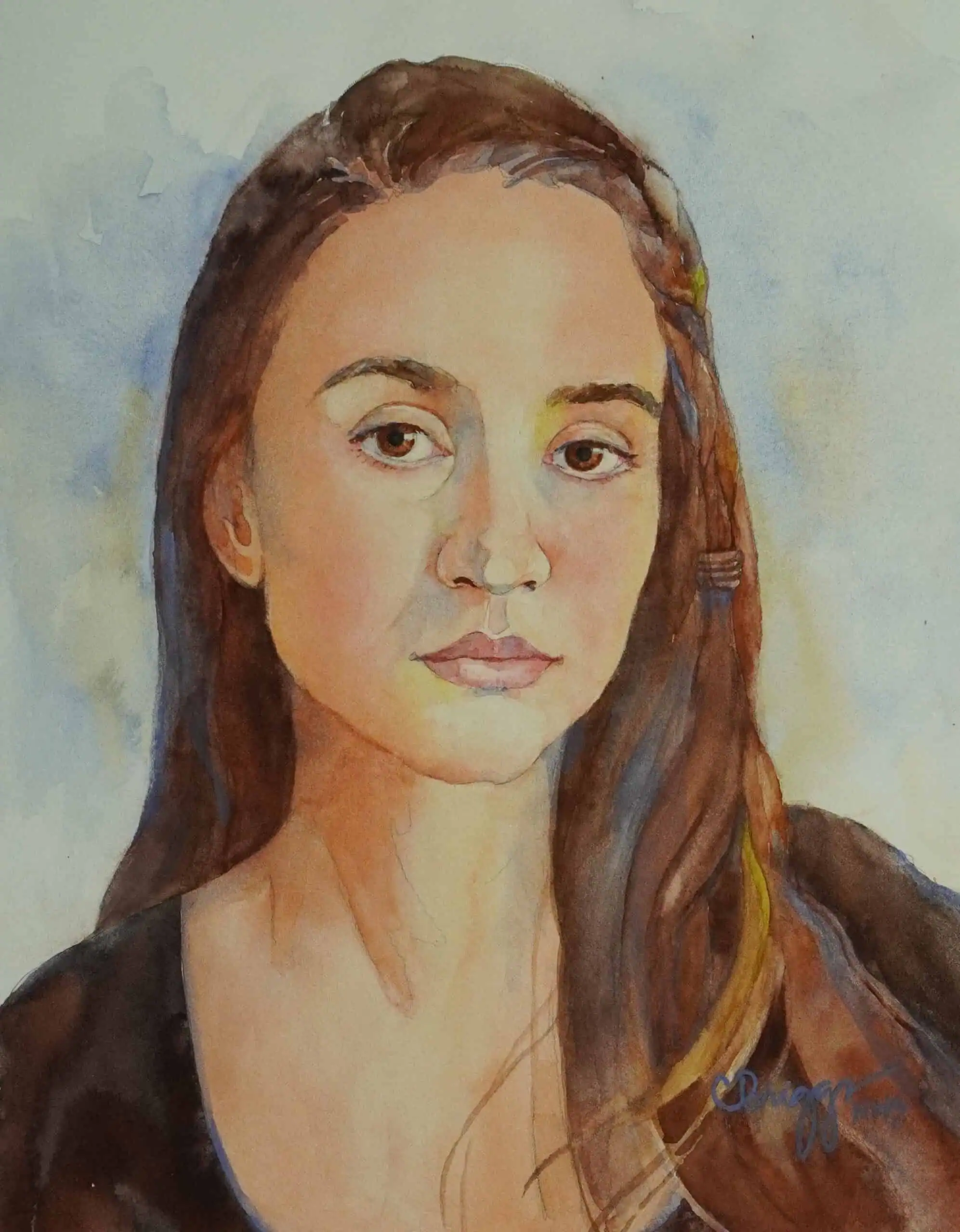 Experience the magic of live watercolor art with this ‘Isabelle’ painting by Cindy Briggs. Witness the artist’s skill come to life as Isabelle emerges from brushstrokes, bringing her beauty to this captivating portrait.