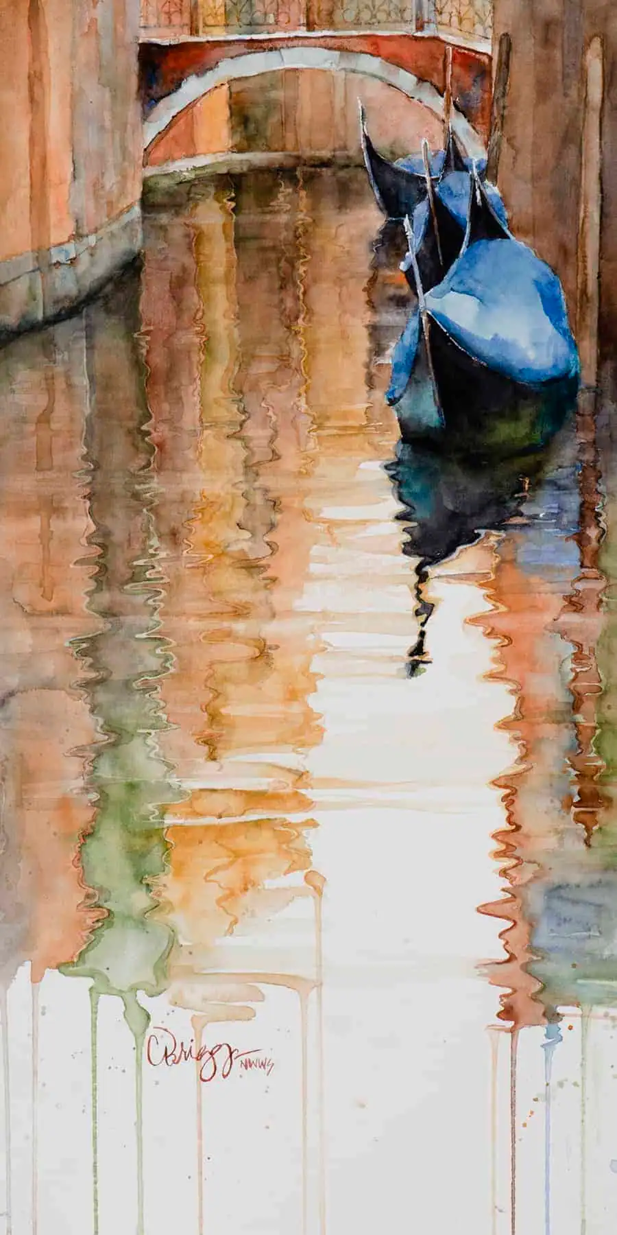From the romantic Amalfi Coast. FeaturedOne of my favorite paintings, the quiet canal and three boats in rest bring a sense of peace and beauty that I feel in classic Venice. in juried NWS international exhibit.